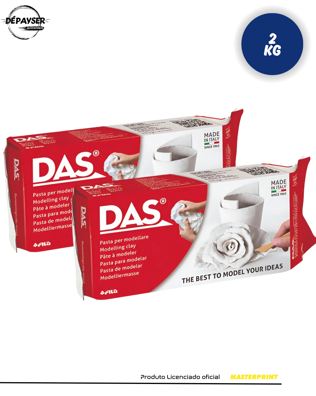 Dê vida às suas ideias com o Kit 2 massas de modelar DAS branca 1Kg! Perfeita para artistas, artesãos, estudantes e entusiastas do DIY, essa massa é pronta para uso, seca ao ar (sem necessidade de forno) e proporciona um acabamento liso, resistente e de qualidade!