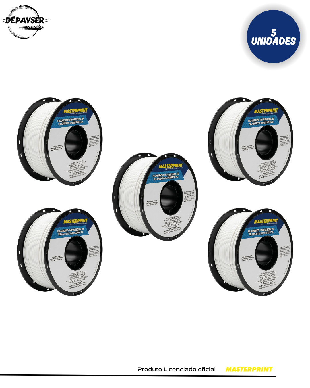KIT 5 Unidades Filamento PETG Branco Impressora 3D 1.75mm 1kg Masterprint