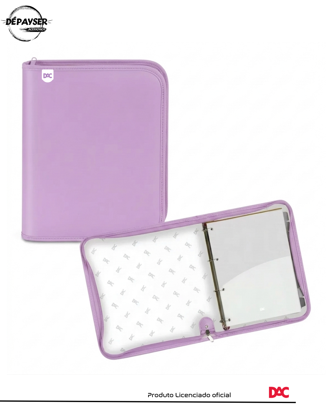 Fichário Escolar Universitário Com Zíper Dac ideal para estimular a organização dos estudos diários e alcançar metas e objetivos sem perder a motivação. Versátil ao inserir ou retirar folhas, graças às argolas articuladas que abrem, facilitando esta ação. Útil e com estilo, feito para impressionar na escola ou faculdade.
