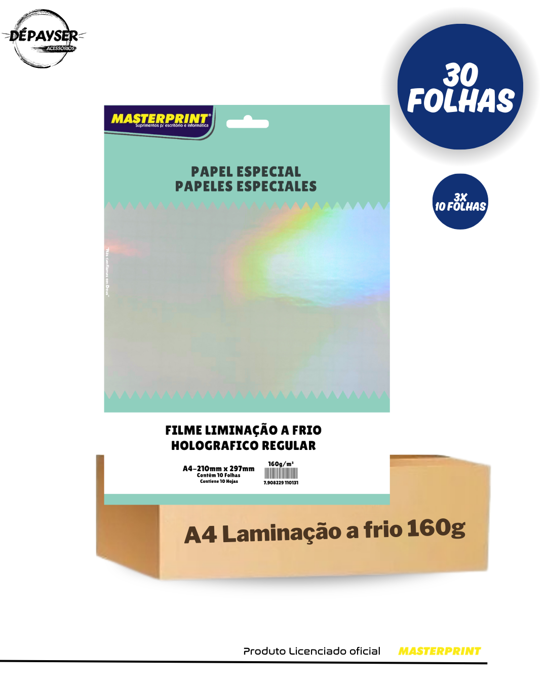 • 03 Pacotes de 10 folhas- Filme Laminação a Frio Holográfico Regular 160g A4 10 Folhas - Masterprint