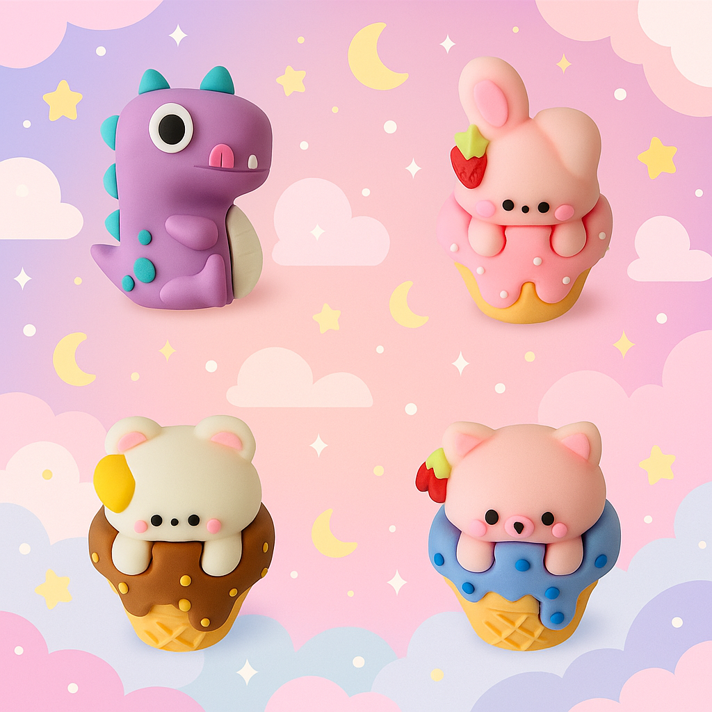 Cores: Dino Roxo, Coelho, Urso e Porco