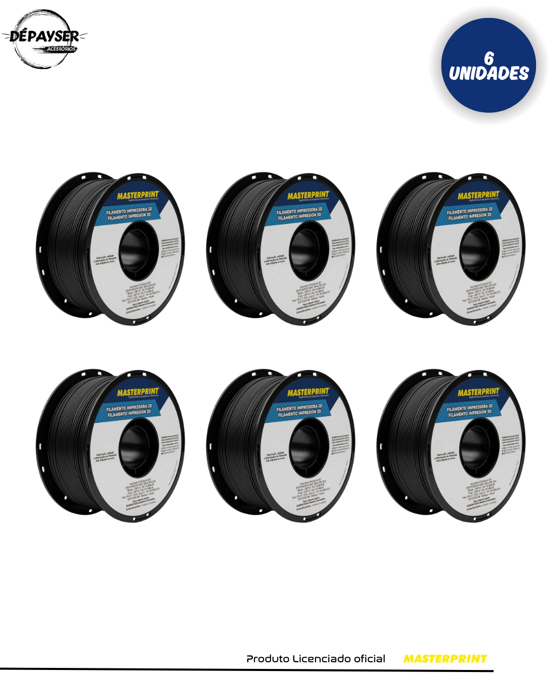 KIT 6 Filamentos PETG Preto 1.75mm 1kg para Impressora 3D – Masterprint