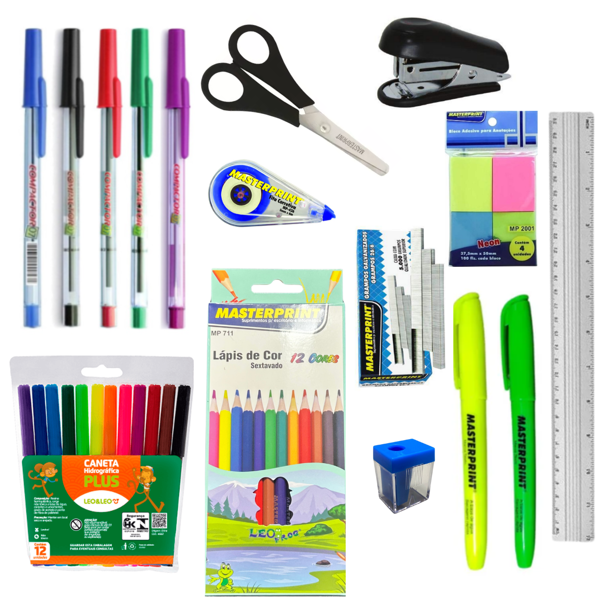 *Apontador, marca texto e régua 30 cm serão enviados conforme disponibilidade de envio (cores).