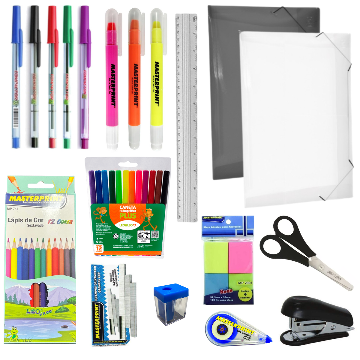 ATENÇÃO: Apontador e pastas com elástico serão enviados conforme disponibilidade de envio (CORES)