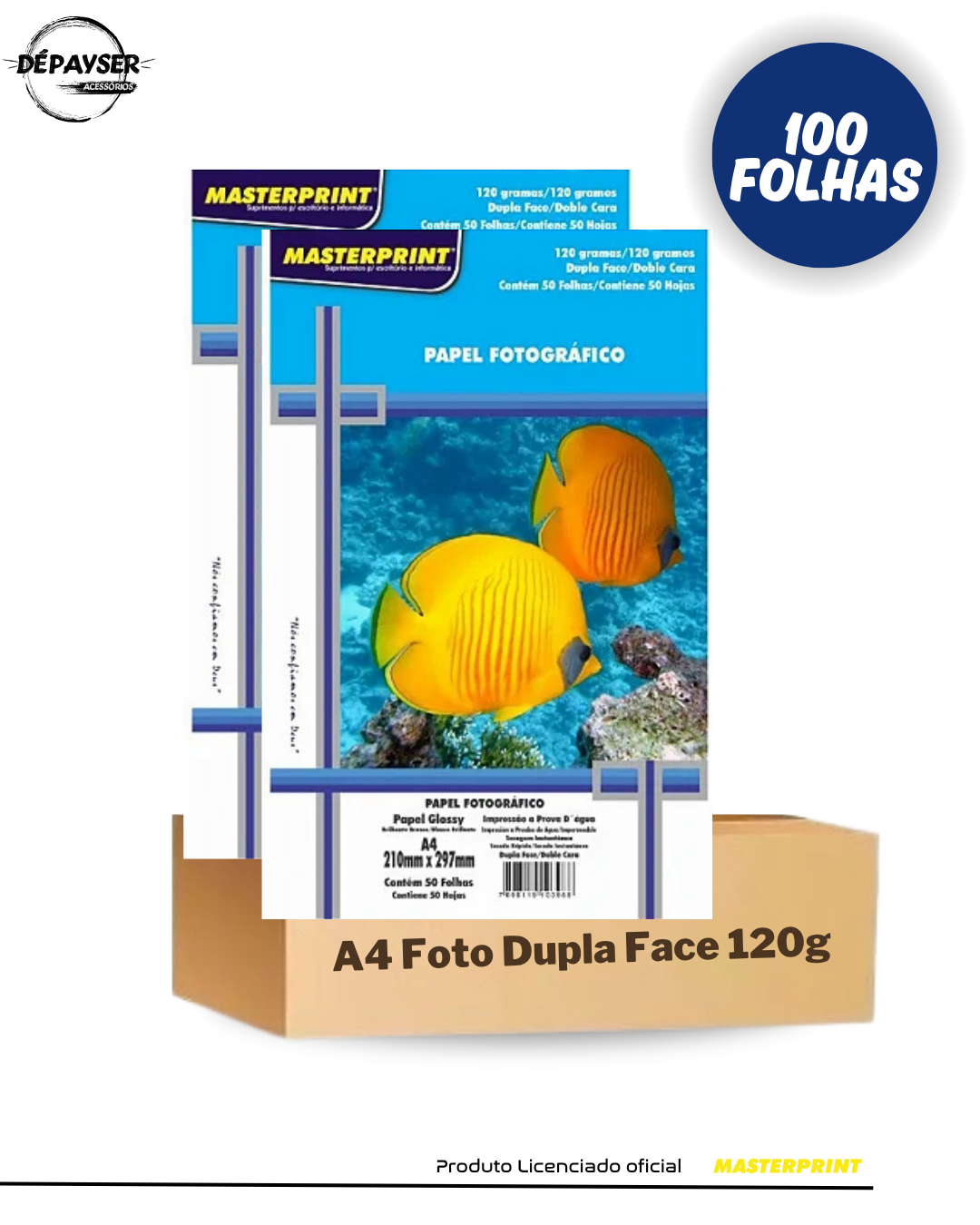 Papel Fotográfico Glossy DuplaFace A4 120 g - 100 Folhas Masterprint