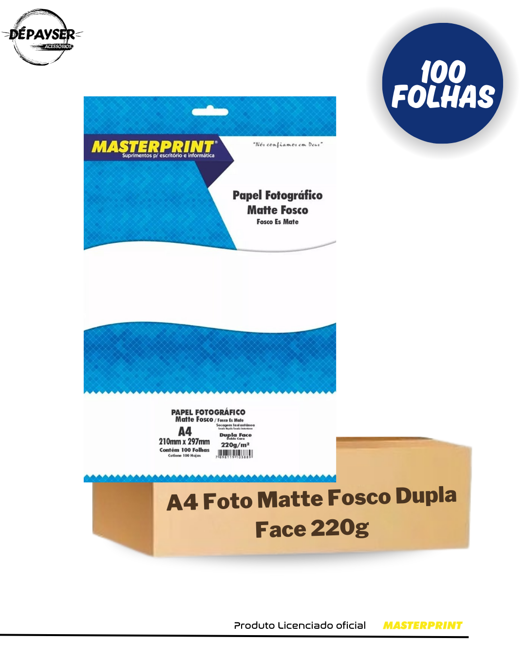 Papel DuplaFace Matte Fosco Branco A4 220 g – 100 Folhas Masterprint Premium