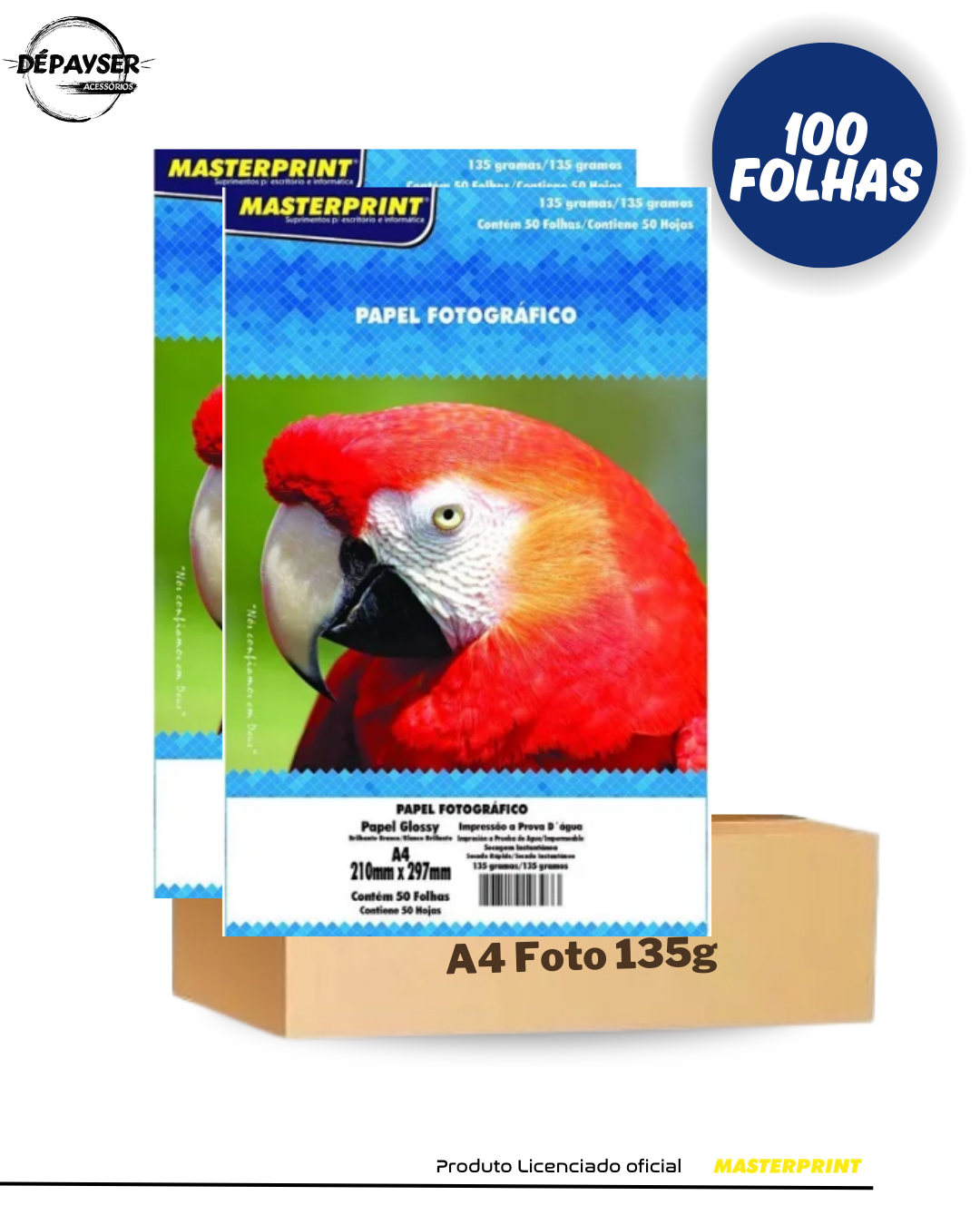 - 02 Pacotes de 50 folhas- Papel Fotografico Glossy 135 g A4 Masterprint À Prova D´água