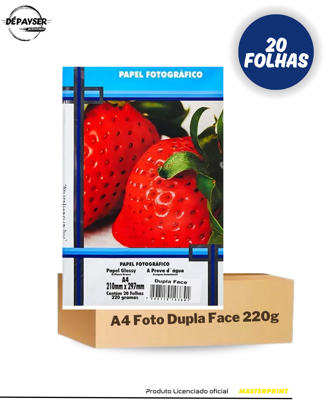 Papel Fotográfico Glossy DuplaFace A4 220 g – 20 Masterprint Folhas Premium