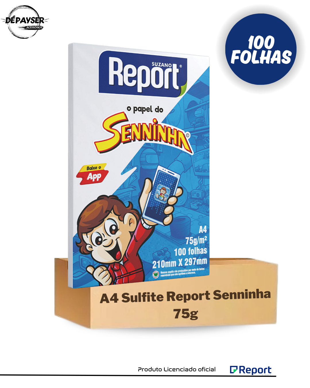 01 Pacote de 100 folhas- Papel Sulfite Report Branco Resma A4 75g - Senninha