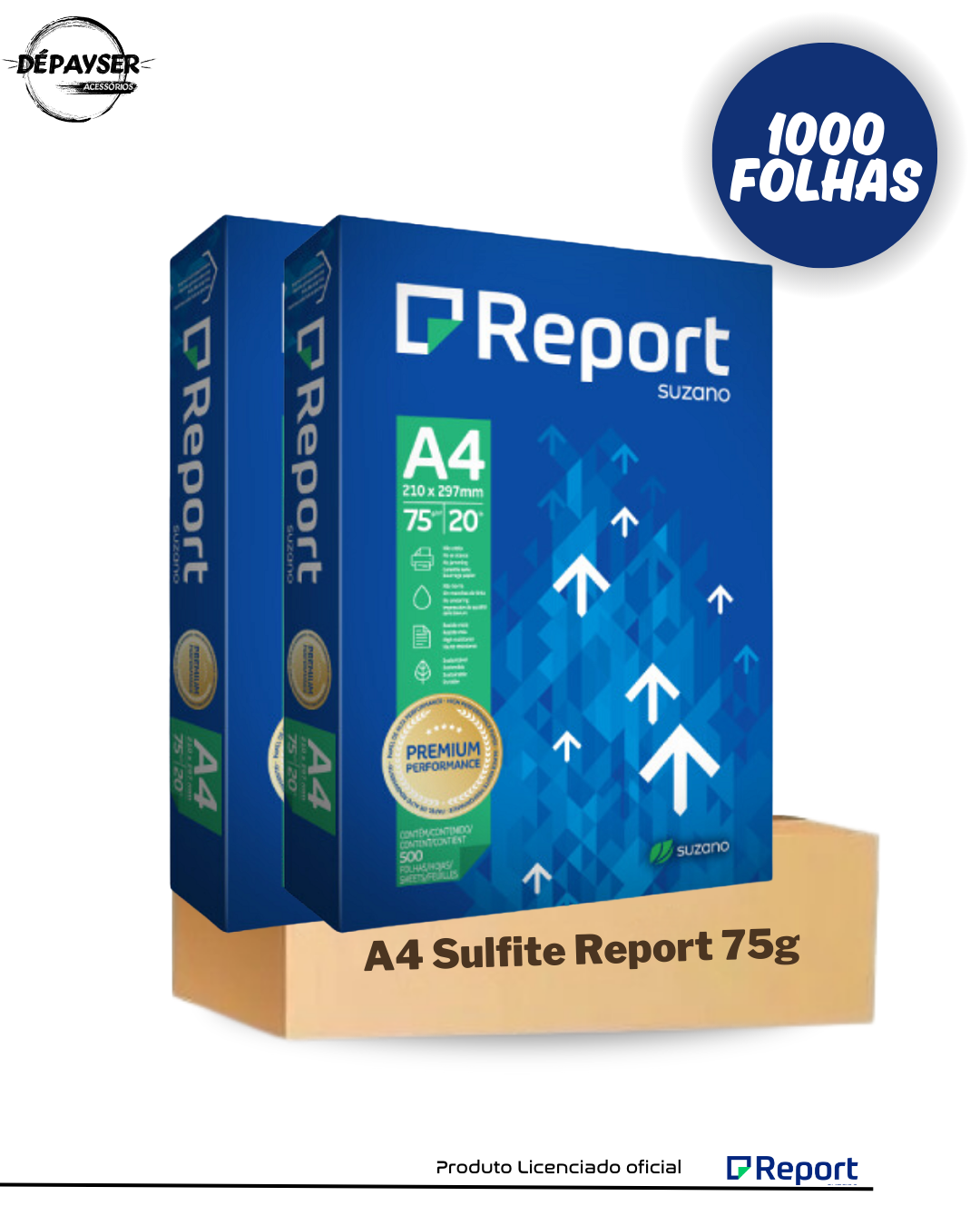 Tamanho do papel: Papel Sulfite A4 75g Resma 500 Folhas Premium Report Suzano A4