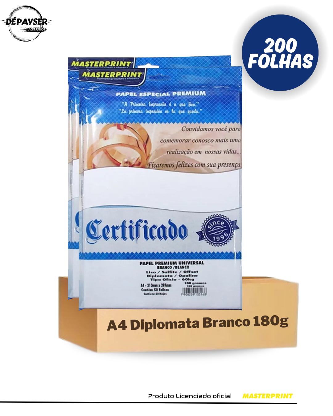 Papel Sulfite Opaline Diplomata A4 180 g Branco – 200 Folhas MasterPrint Premium